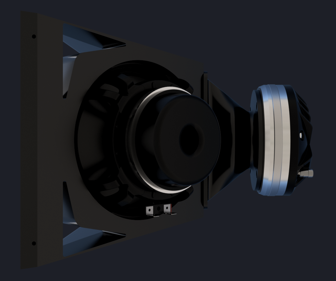 The HOQS 2x6 MidWave Module Kit is a multiple entry horn (MEH) waveguide designed to cover the range from approximately 120 Hz to 18 kHz. The horn geometry is optimized to integrate two 6-inch drivers with a 1.4-inch compression driver, allowing all sources to couple into a single waveguide for smooth summation and controlled directivity across the full operating band. This approach provides the efficiency of a horn-loaded system while maintaining broadband coherence and consistent response.